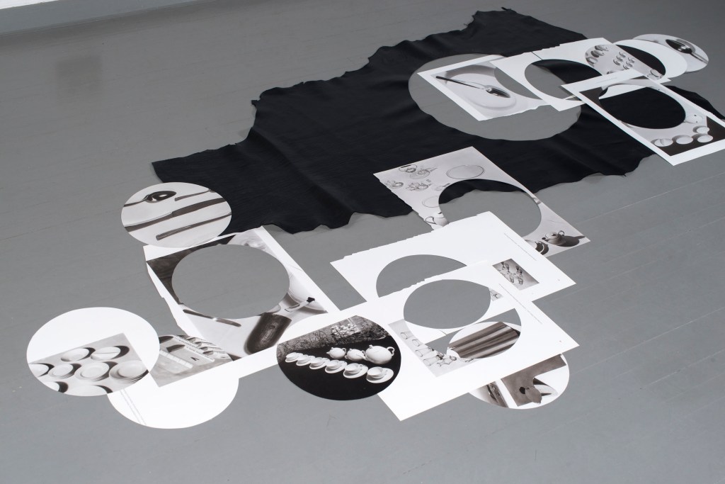 Eclipse Sequence brings together a series of moments shaped by proximity, movement and perception. The installation incorporates a video projected into a circular cut through goat lather, floor-based mirrors that double and appear to move the gallery’s existing wind tunnels and a cut and collaged assembly of bookplates taken from Josef Sudek: The Commercial Photography of Druzstevni Prace.